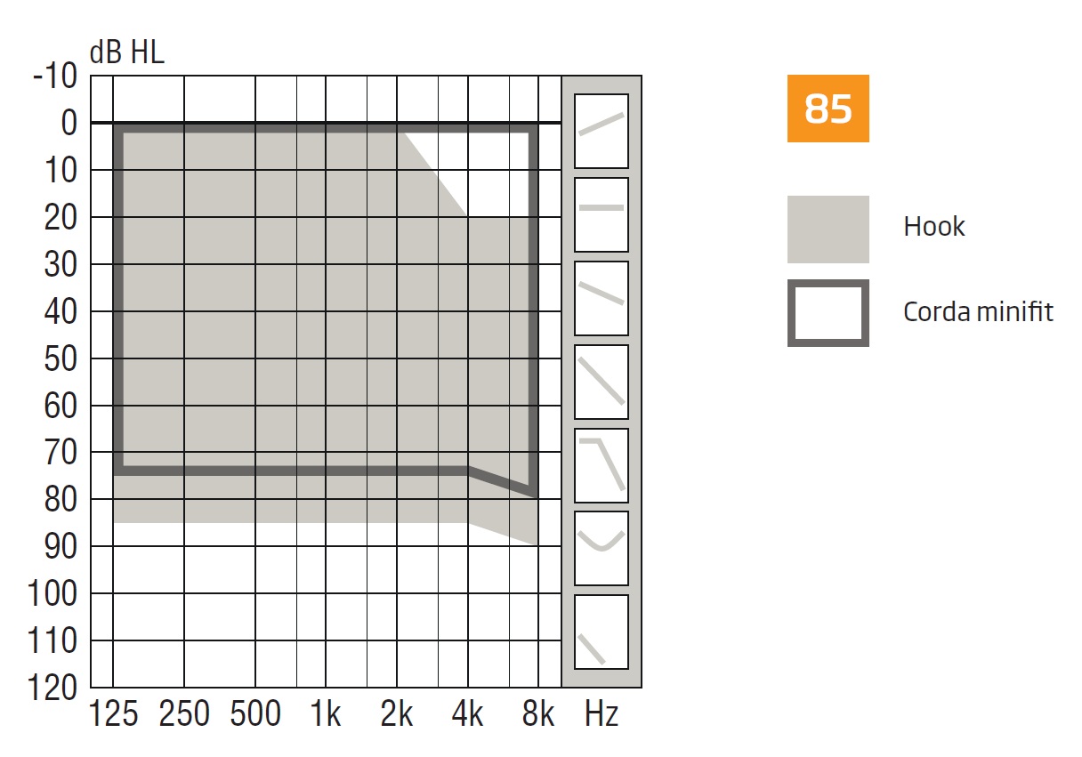 | Компрессия и формулы настройки | Single Compression, понижение частот SpeechRescue™ формулы настройки: NAL-NL1/NALNL2,DSL v5.0 |